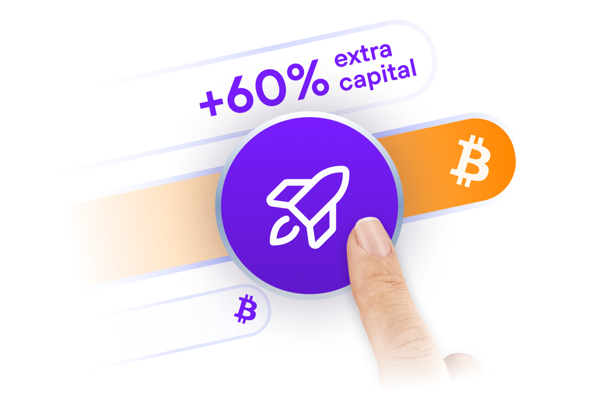 Turbo Nákup je podpora vašeho plánu pravidelných nákupů. Nad rámec vašich vlastních DCA transakcí získáte dalších 60 % nákupní síly. To vám pomůže zajistit si více Bitcoinu za výhodné ceny a dává vám šanci těžit